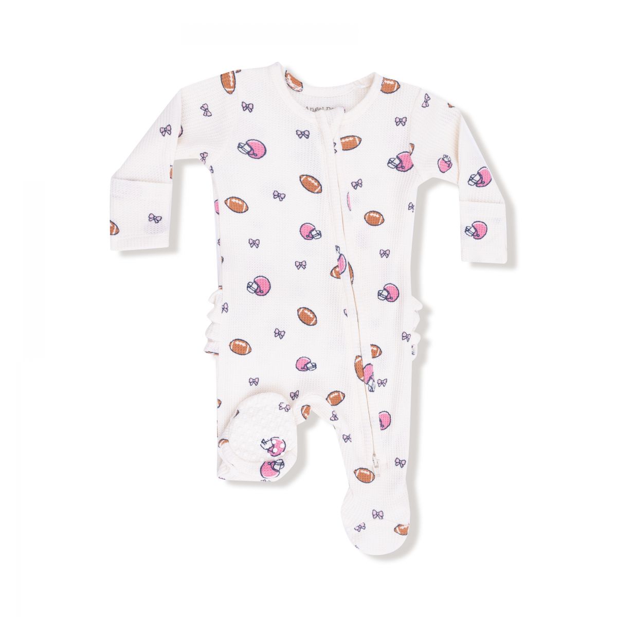 Angel Dear Footballs and Bows - Ruffle Back 2 Way Zipper Footie