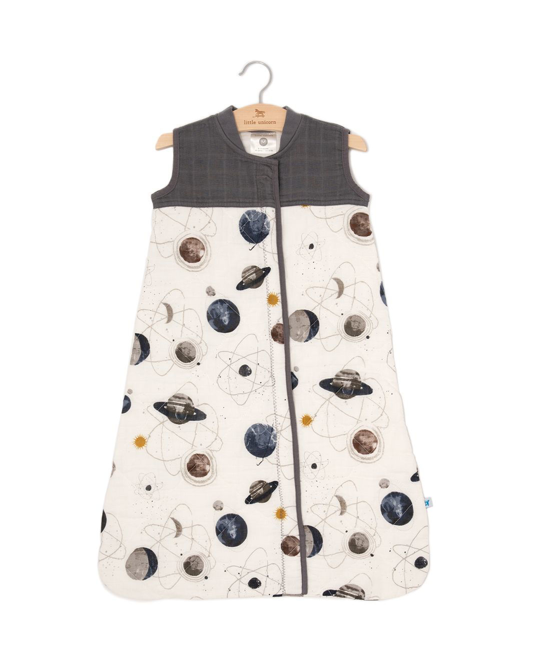 Extra cozy and featured in our signature, hand-painted prints, our Quilted Sleep Bags are a safe and warm blanket alternative during the cooler months of the year. Quilted layers of soft cotton muslin keep heat inside while a unique, breathable design allows air to flow freely — creating a comfortable and cozy sleep environment for baby throughout the night. Included are parent-loving features like a two-way zipper for easy nighttime diaper changes, and machine washable cotton muslin that gets softer with every wash.