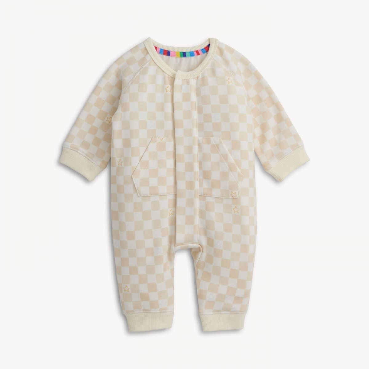 Magnetic Me Chamois Checkerboard Brushed Fleece Romper